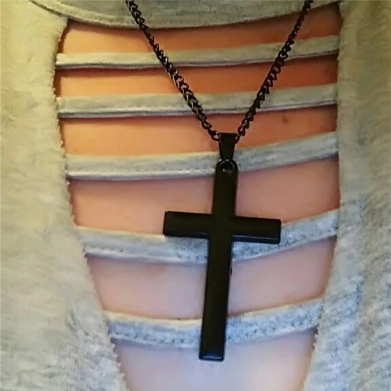 Christian Jesus Single Titanium Cross Necklaces PendantsStainless SteelChoker